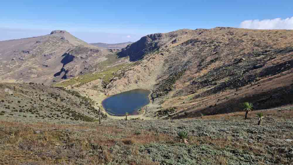 Pohoří Arsi: Kori a jezero pod vrcholem