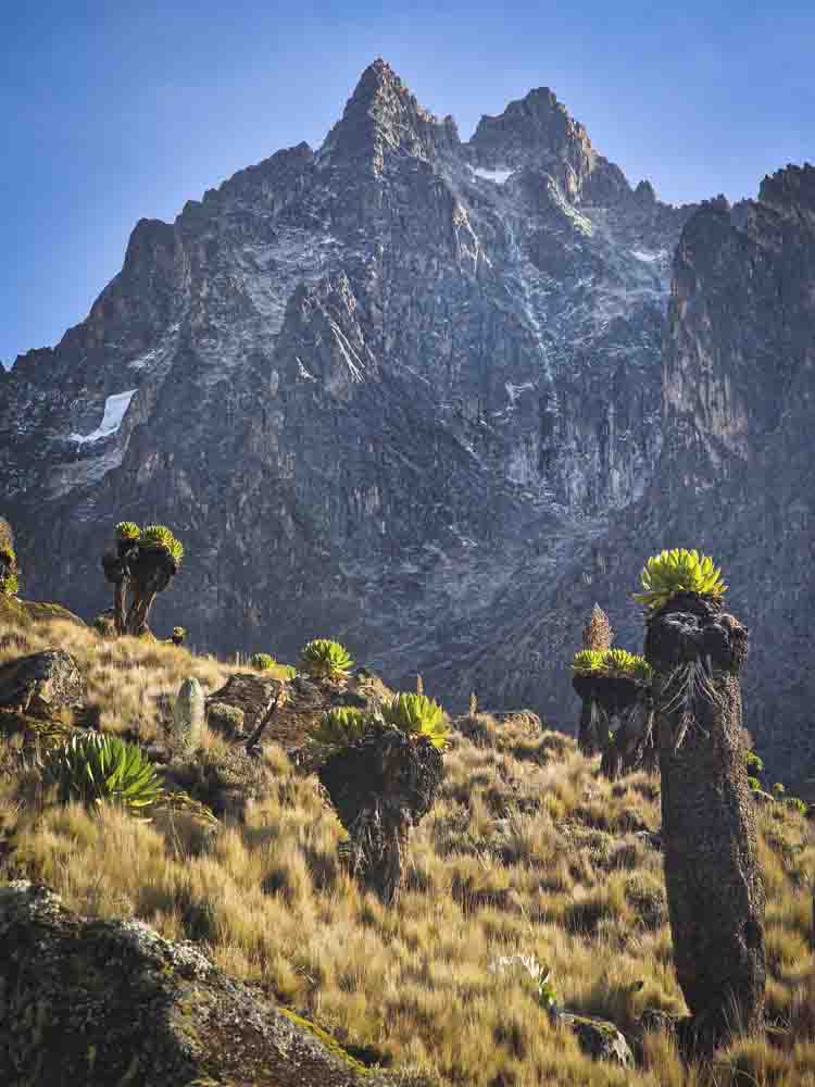 První noc v American campu nás překvapí silná námraza na stanech i spacácích. Ráno ale slunce všechno rychle vysuší. Aklimatizační plán je jasný - vystoupit na trekový vrchol Lenana (4 985 m).