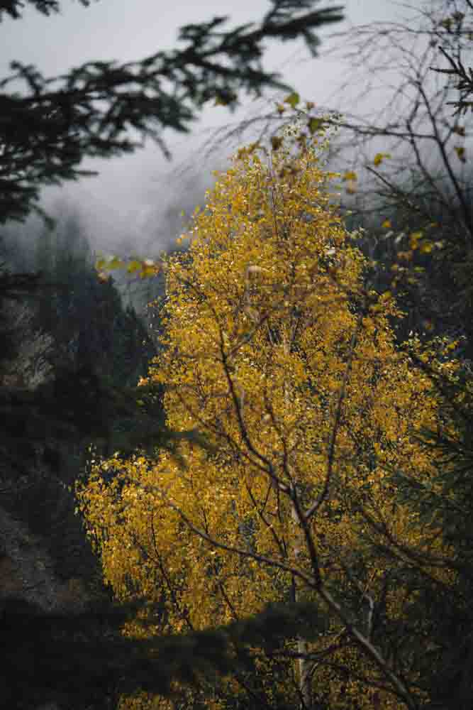 Pozdní podzim na horách mám moc ráda. Břízy a javory v barvě zlata, červené jeřabiny kontrastovaly s temně zelenými smrčinami a nad tím vším se válela mlha, která tu a tam odkryla lehce pocukrované vršky.