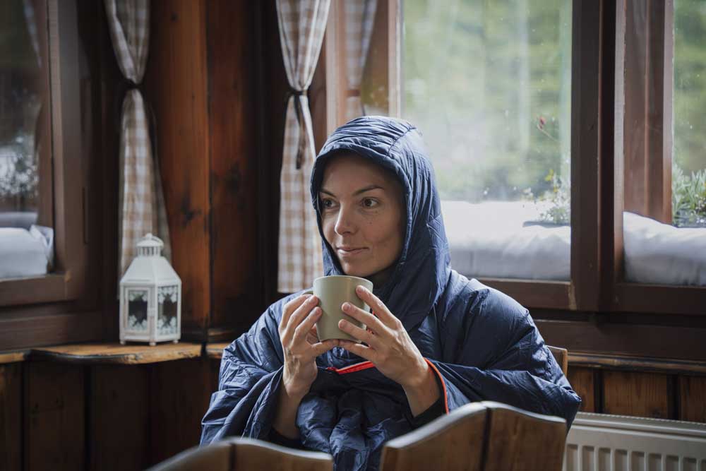 Večer v chatě jsem ještě vyzkoušela zateplovací deku Chalet Poncho. Dá se přetáhnout přes hlavu jako pončo a příjemně hřeje. K večerní pohádce to byla paráda. Přiznám se, že jsem v ní skoro usnula.