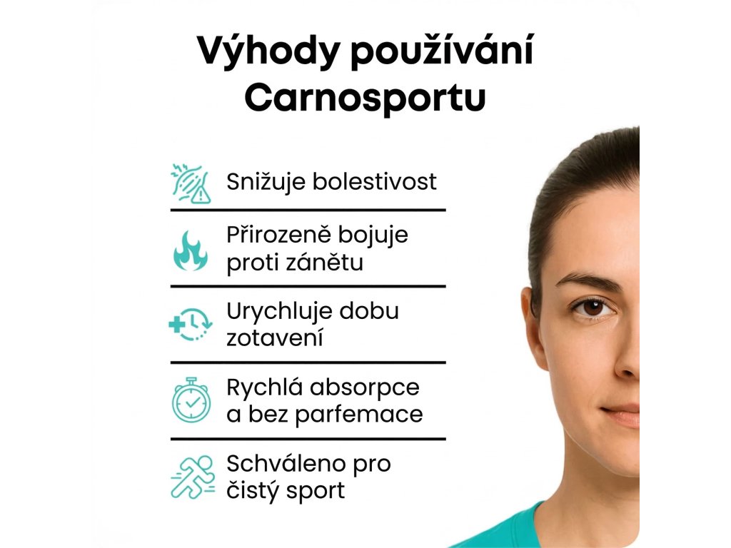 CARNOSPORT se používá velmi snadno. Jeho složení je navrženo tak, aby se rychle vstřebávalo do pokožky a nezanechávalo lepivý film ani skvrny na oblečení. Stačí nanést tenkou vrstvu a jemně vmasírovat – je to tak jednoduché.