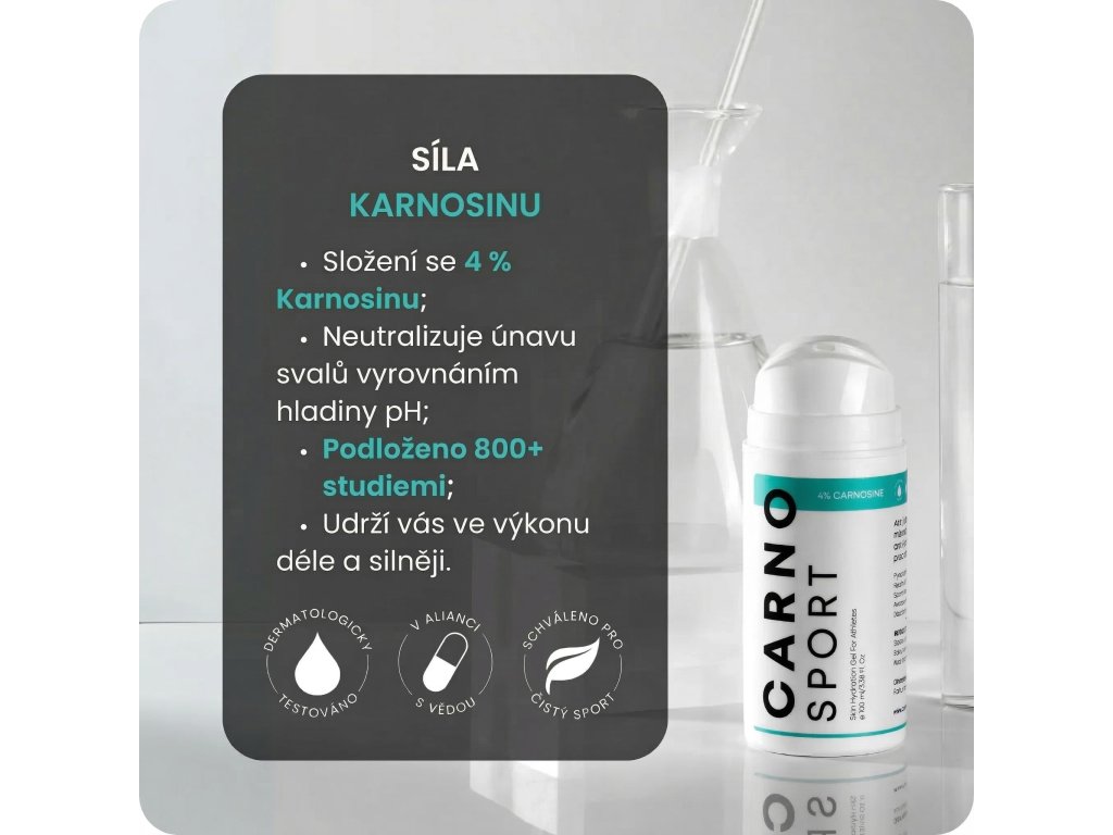 CARNOSPORT vám pomůže rychleji regenerovat po tréninku nebo závodě. Jeho formule se 4 % carnosinu pomáhá bojovat proti hromadění kyseliny mléčné, čímž snižuje svalovou bolest a urychluje regeneraci. Díky tomu se můžete dříve vrátit ke svým oblíbeným aktivitám a cítit se při nich lépe.