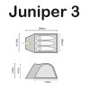 A double-wall tent for three person whose self-supporting design provides for good stability in trong wind. Ideal for trekking and camping.