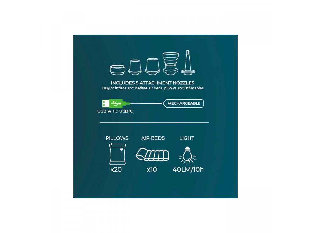 Thanks to the attachments, the pump can be used on all models of inflatable and self-inflating YATE mattresses and most models from other manufacturers.