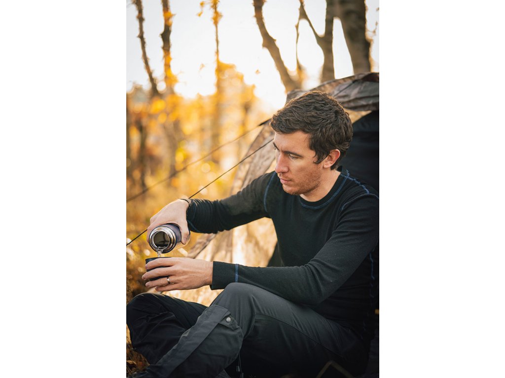 In winter, hot tea with a drop of rum comes in handy and gives you an extra boost of energy. A high quality thermo-flask keeps your drink hot for 24 hours, which means, you can get it ready in the evening and on the day of your hike you won´t lose time with cooking. You´ll enjoy your stay outdoors and will have a hot drink at hand. Our BOTELO thermo-flask is made of stainless 18/8 steel with a double wall and vacuum insulation. Due to a groove in a screw cap you can easily pour your drink, seal off the contents and clean the flask. Outer cap double as a drinking cup.