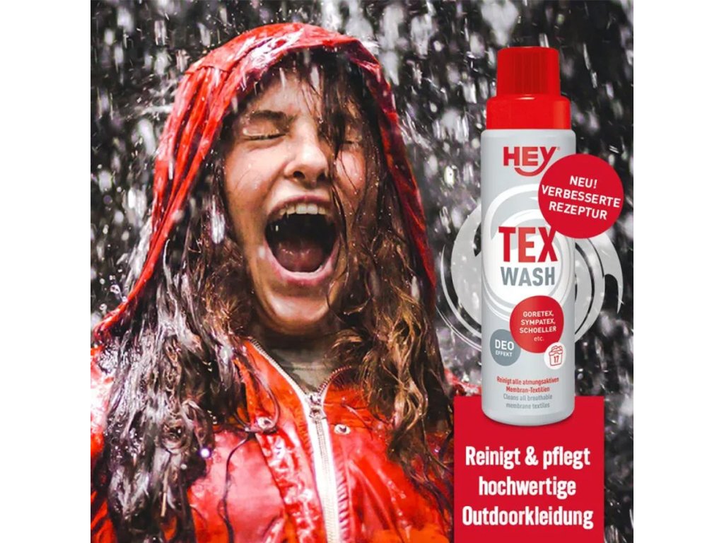 HEY SPORT® Tex Wash je nepostradatelný prací prostředek pro funkční oblečení, jako je Goretex®, Sympatex®, Schoeller® atd. Ideální pro voděodolné oblečení na hory a na motocykly. HEY SPORT® Tex Wash zachovává funkci a neucpává membránu. Speciální přísady neutralizují zápach. Neobsahuje bělidlo.