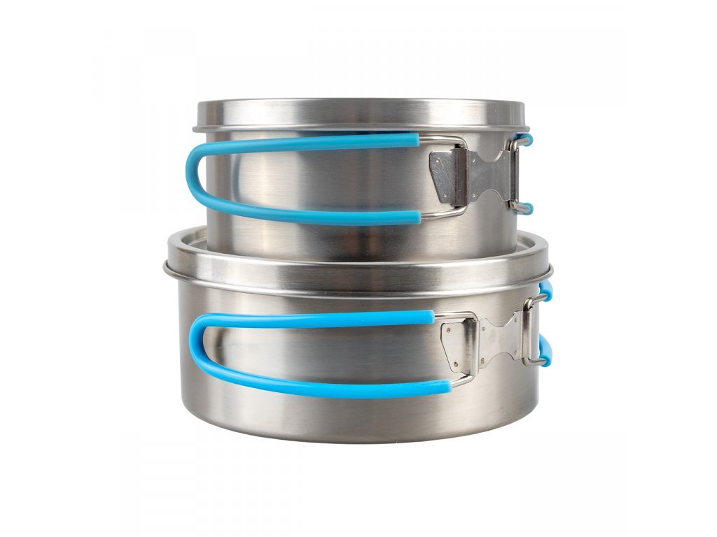 Sada na vaření pro 2-3 osoby z kvalitní nerezové oceli. Sklopná držadla a pokličky jsou opatřeny silikonem, přepravní obal. Nerezová ocel se neodírá a nepodléhá opotřebení, vydrží tedy mnoho let.