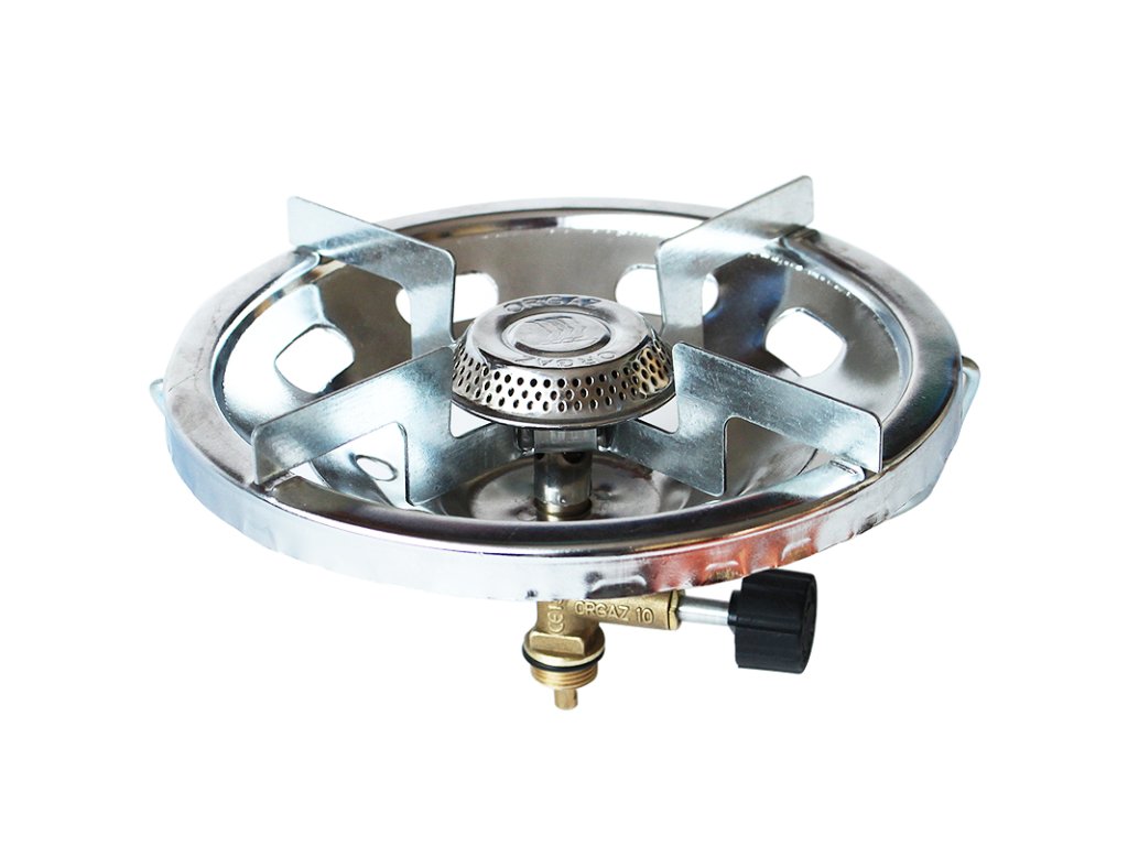 Jednoplotýnkový vařič pro použití na plynovou bombu 2kg. Výkonný hořák o průměru 56 mm. Plotýnka široká 180 mm unese i větší hrnec, aniž by se ohýbala. Hořák je vybaven praktickým uchem.