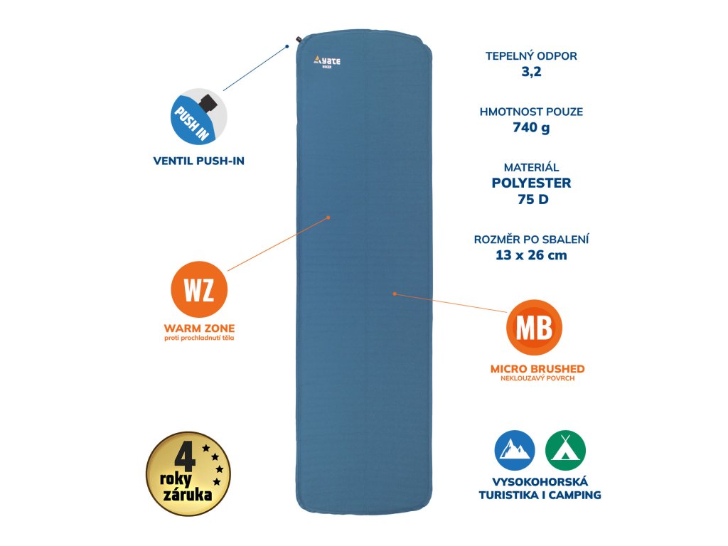 YATE HIKER 2,5 modrá/šedá Samonafukovací karimatka