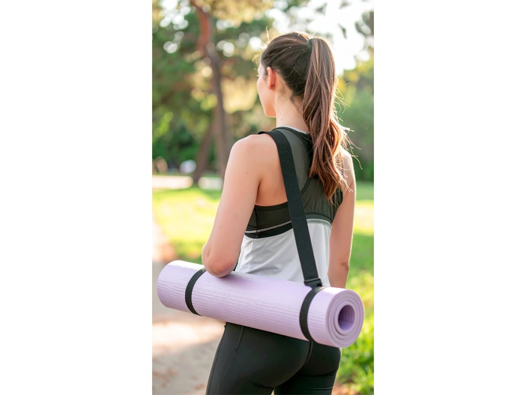 Pás na karimatku je praktickým řešením pro snadné přenášení a uskladnění jógových a cvičebních podložek. Díky jednoduchému systému smyček, které se utahují vahou podložky není potřeba žádné nastavování. Pás zároveň slouží jako pomůcka pro protahovací cviky.